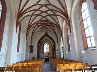 Zu den Schätzen der Kirche gehören vor allem die Wandmalereien: Szenen aus dem Leben Jesu im Chor (um 1300), neben dem Ostfenster im Chor große Darstellungen des Erzengels Michael und Marias mit dem Kind (um 1470), in der Nordkapelle mehrere Heiligenbilder und eine Kreuzigung (um 1440 – um 1470). Bemerkenswert: rechts des Triumphbogens eine steinerne farbige Konsole mit Mondsichel und weiblichem Gesicht, sie trugen einst eine verschwundene Madonnenfigur. Wertvoll ist auch die Orgel von Georg Markus Stein auf der Empore im Westen (1768). Eine kleine Orgel von Joseph Merklin (1830) steht jetzt in der Südkapelle.