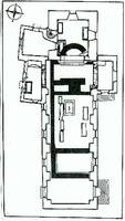 Das rechteckige Kirchenschiff reicht von der torlosen Westseite rund 29 Meter bis zum Chor. Die weißen Nord- und Südwände werden von je einem Tor (1479) und je drei hohen Fenstern gegliedert. Vor dem Chor scheinen sich Nord- und Südkapelle an das Langhaus anzulehnen. Beide haben je einen heute verschlossenen Eingang. Mit Dach ist das Langhaus 17,5 Meter hoch, der Chorturm erreicht 33 Meter. – Trotz gotischer Fenster eine eher romanisch wirkende Kirche!