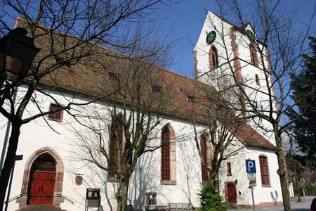 Hell gestrichene Wände und hohe farblose Fenster im Langhaus sowie rechteckige hohe Fenster in Nord- und Südkapelle vor dem Chor geben dem Inneren des Gotteshauses Höhe und Leuchtkraft. Ein harmonisches Netzgewölbe, dessen Parallelrippen rotbraun gestrichen sind, verbindet die Wände des Kirchenschiffs. Ein kleinerer Schlussstein vor dem Chor enthält das Wappen eines irdischen Kirchenpatrons, des Markgrafen Rudolfs IV. von Rötteln-Sausenberg, gleichzeitig Grafen von Neuenburg (1441 – 1487). Der große Schlussstein zeigt den Erzengel Michael, den himmlischen Kirchenpatron. Das Kircheninnere entspricht heute wieder der Grundform, die es bis etwa 1480 unter Markgraf Rudolf IV. erhalten hatte.