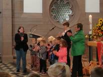 Drei Gottesdienste im Jahr, zu denen die Eltern und die Gemeinde eingeladen sind, werden mit den Kindern als Projekt durchgeführt. Die Gottesdienste werden mit der Diakonin geplant. Den Vorschülern obliegt dabei in der Regel die Hauptrolle. Wir gestalten ein Lied aus, spielen eine biblische Geschichte vor oder präsentieren ein Bilderbuch, dass die Lebenssituation und die Fragen der Kinder wiederspiegelt.